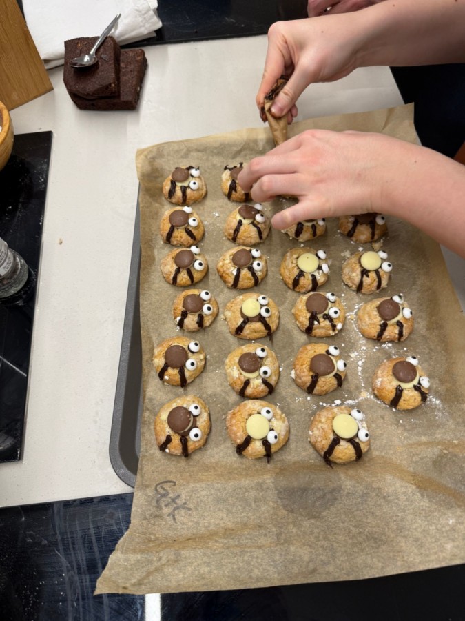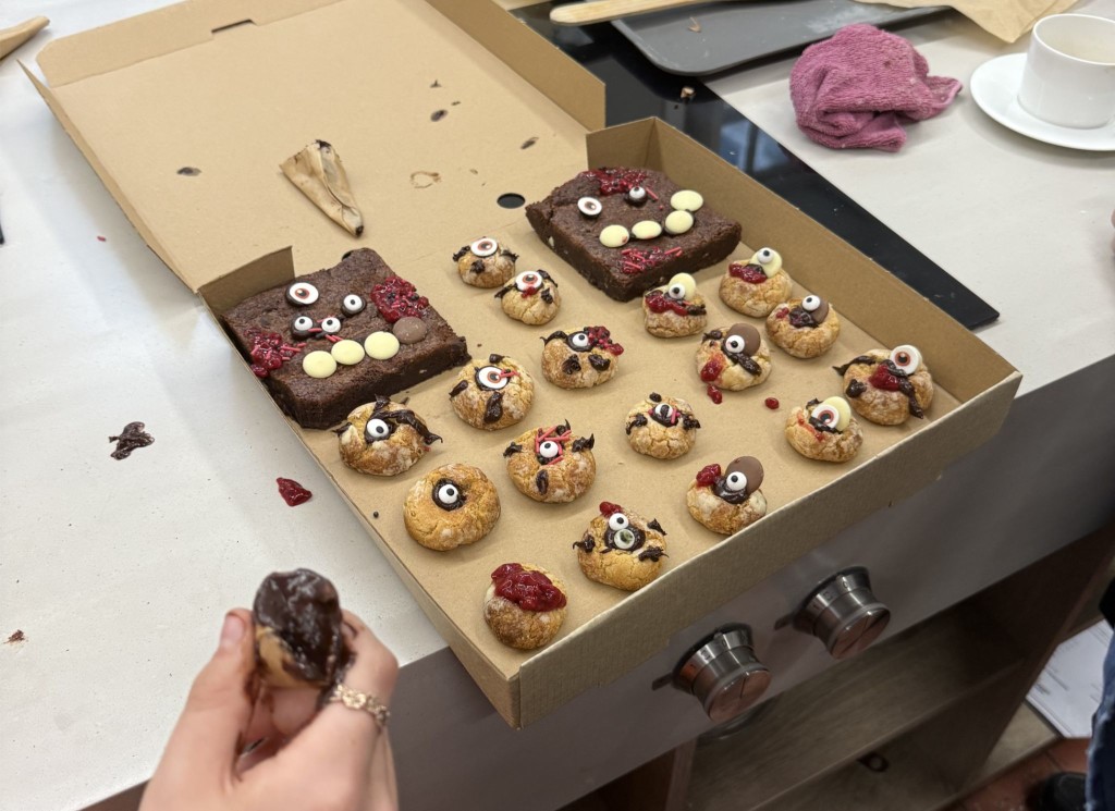 We were so proud of all our participants who took part in our Teens & Tweens Halloween Baking class. Bakers young and old rolled up their sleeves and the kitchen was buzzing with creativity as they whipped, mixed, dipped and decorated a whole range of spooky treats. From peanut butter spider cookies, chocolate-dipped treats and cakes with googly eyes there were more treats than tricks. After, they baked delicious pesto and spinach halloween hand pies. The atmosphere was full of fun and the families learned some great new baking techniques.